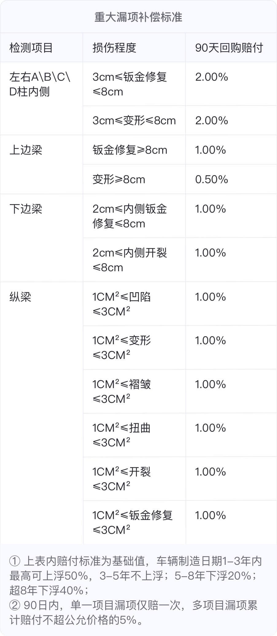 ②被检车辆系检测报告出具前属于上述三类车,而查博士出具的检测报告仅提示上述其中一类重大问题的,查博士可以按照车辆公允价格的10%以内进行补差;